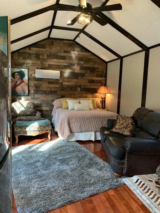 This cozy studio-style tiny home adds a steampunk vibe to your space with the help of this tiny home that’s got everything covered under one small roof. With 24′ x 12′, it’s perfect for anyone who wants their own cozy place close to family members or friends without worrying about having another person living in an already crowded apartment complex. The incredible design is welcoming and has more than enough room inside not just so you can live but also grow into adulthood while still maintaining some sense o
