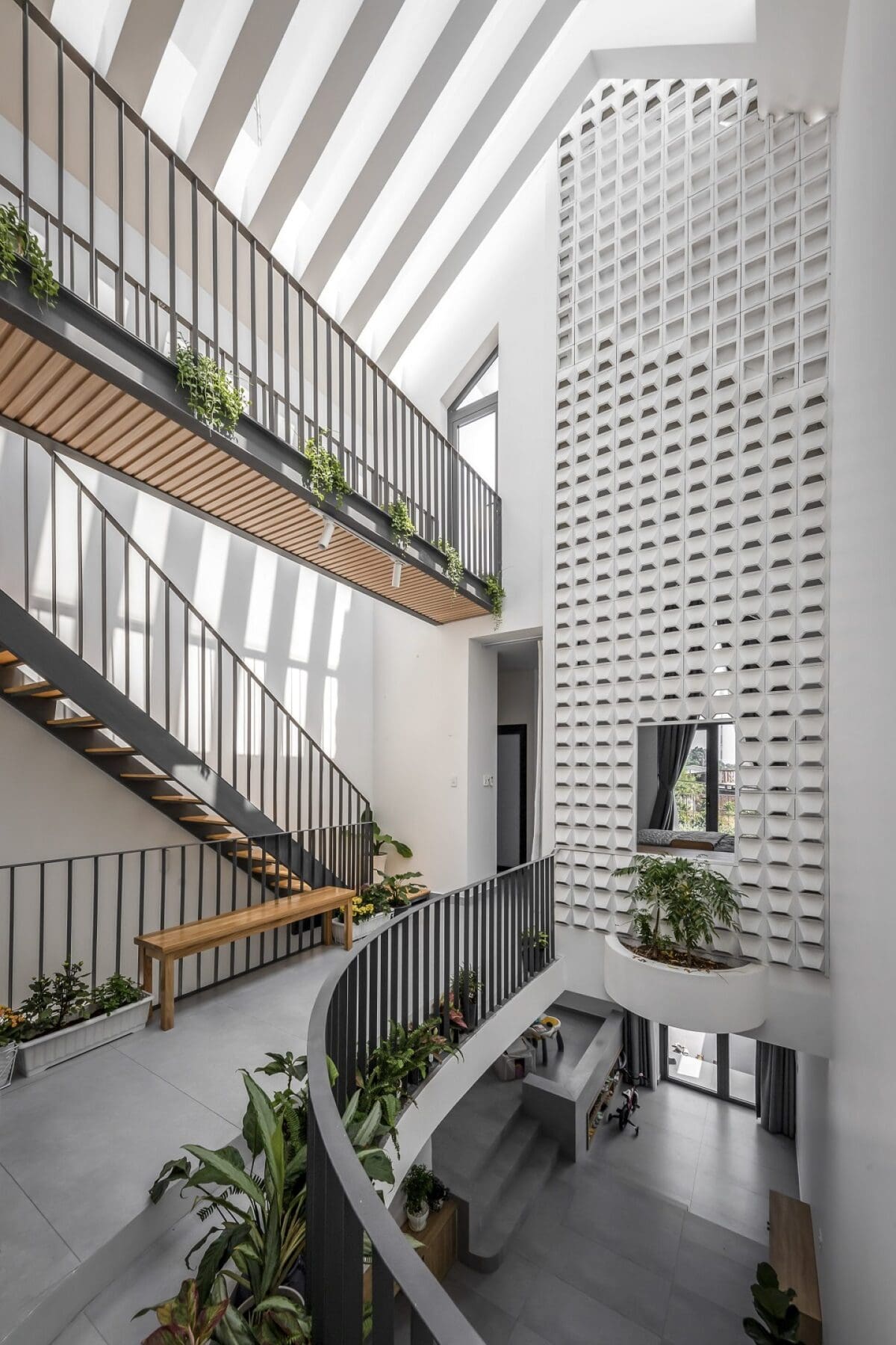 A young couple’s dream house is a 125m² Salem House in Thu Dau Mot City, Binh Duong Province. The architects designed the home for a young couple with a four-year-old daughter. The main goal was to create a well-ventilated home with plenty of indoor plants that would provide relaxation and relieve pressure. This unique Salem house also features many playgrounds for kids to play and explore on their own. Plus, parents will have more private time together. If you’re searching for a breathtaking and one-of-a-kind home in Vietnam, the Salem House is perfect for you!